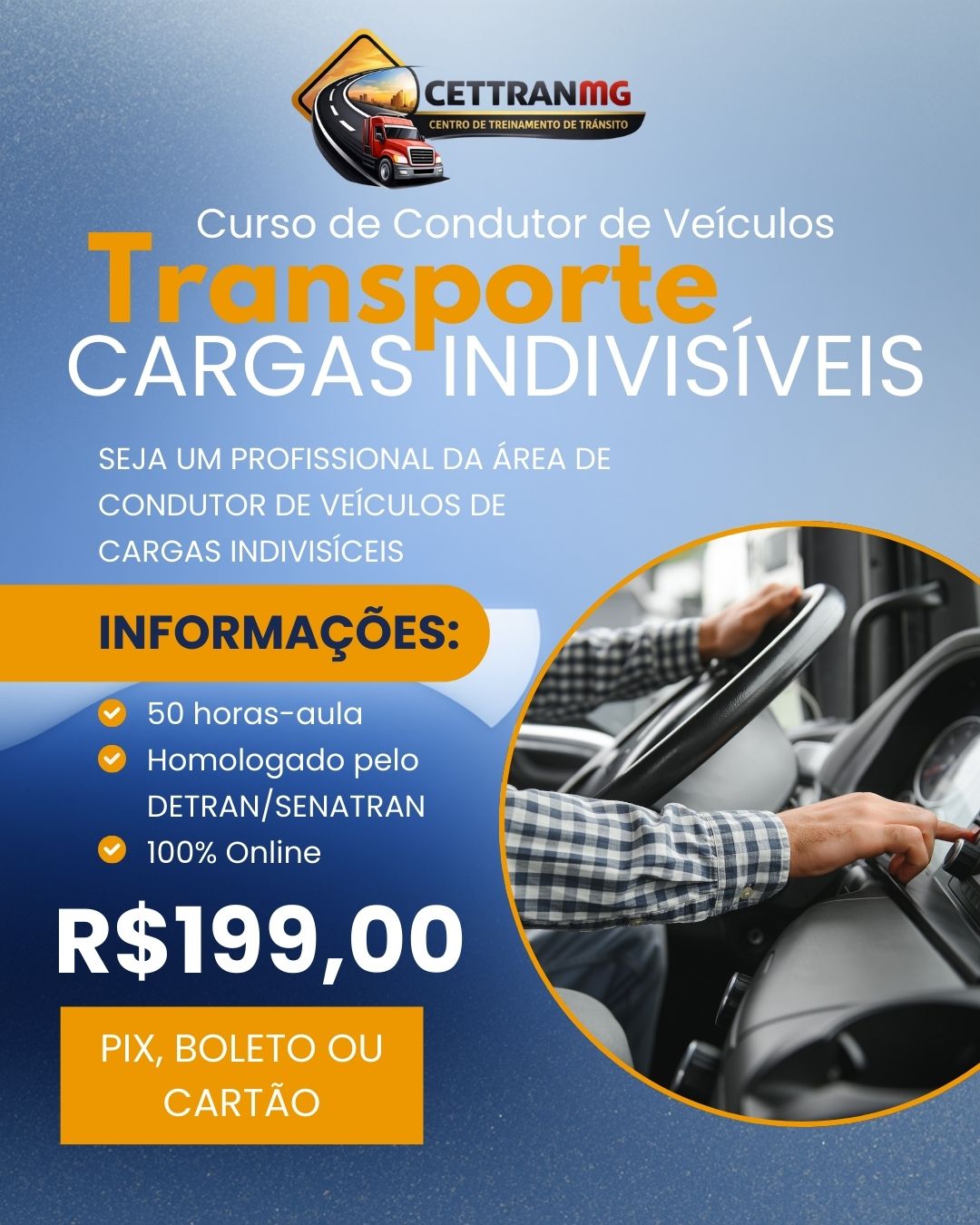 O Curso de Condutor de Veículos de Transporte de Cargas Indivisíveis do CETTRANMG capacita motoristas para operar com segurança no transporte de cargas especiais que excedem os limites convencionais de peso e dimensão.